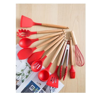 Colorful Kitchen Utensils Silicone 12 Piece (Red)